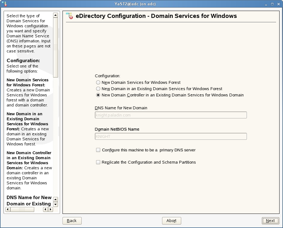 NOTE:We recommend that you select this option to replicate the schema and configuration partition to the subsequent domain controller