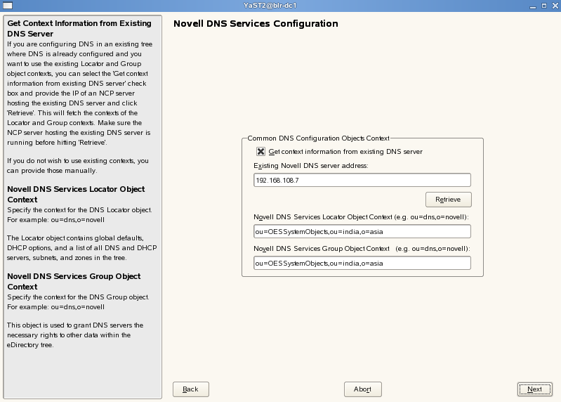 If you already have an DNS server configured in your tree, select the option and provide the IP address of an existing DNS server and select .