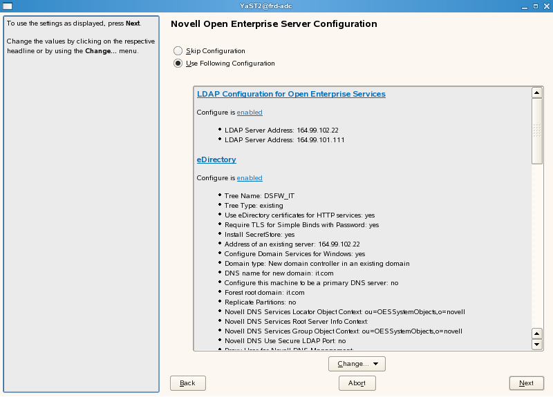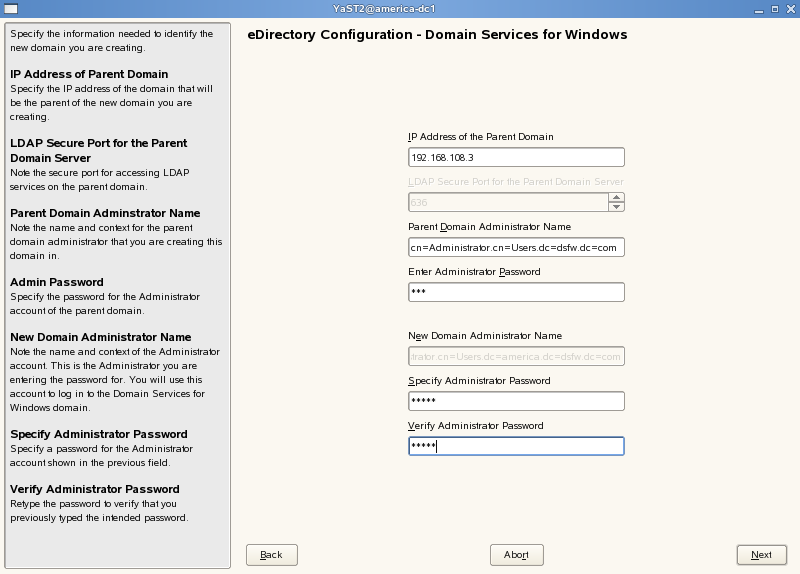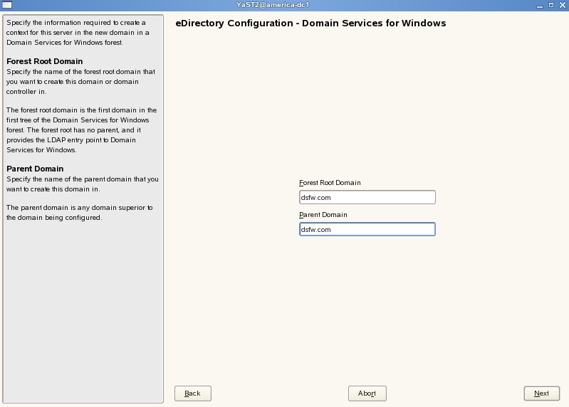 NOTE:This screen is not displayed if the child domain is installed when the parent domain is on OES2 SP3.