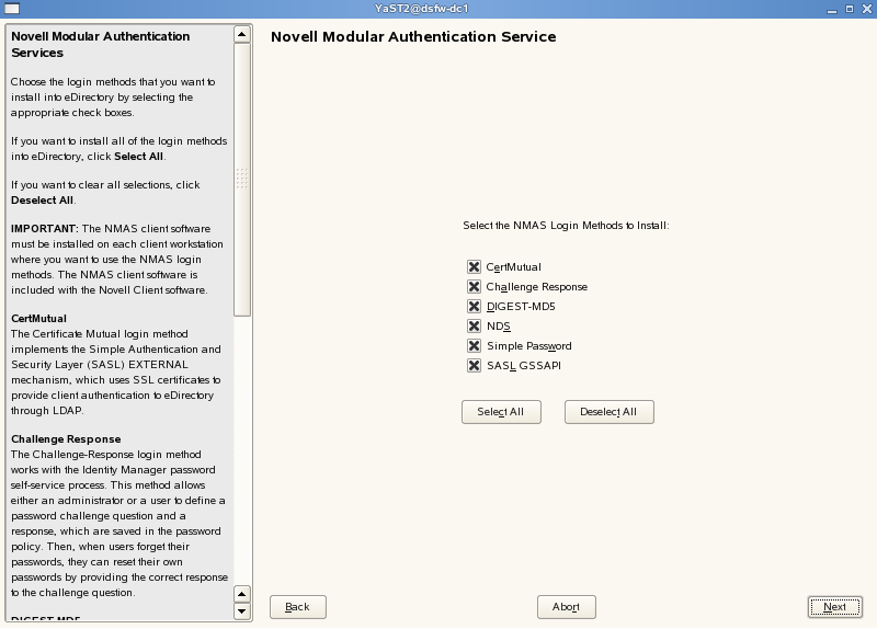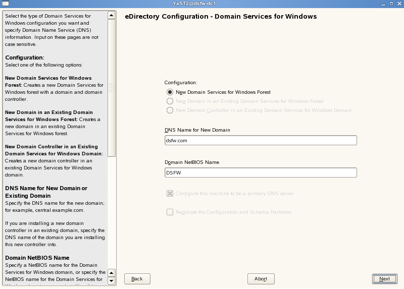 In the YaST install for OES from page, select Novell Domain Services for Windows pattern. Click .