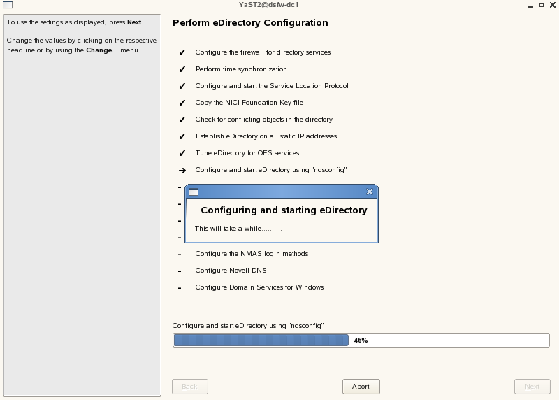 The DSfW server is now ready for use. Verify that eDirectory and DSfW have been installed and configured correctly by executing the instructions in Section 8.0, Activities After DSfW Installation or Provisioning.
