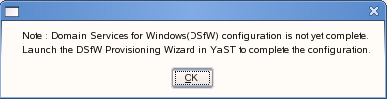 Launch YaST. The DSfW Provisioning Wizard is listed as an option.