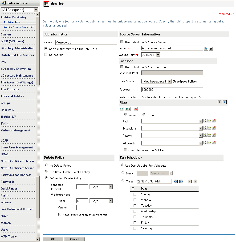 To use the defaults, you must set default job settings before the job runs. (In , expand the role, select , the select .) For information, see Section 7.4, Configuring Default Job Settings.