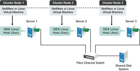 IMPORTANT:All virtual cluster nodes in the same cluster should be either Linux or NetWare. Do not mix Linux and NetWare cluster nodes in the same cluster.
