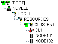 Cluster nodes and Cluster objects can exist in any container in the eDirectory tree. The Virtual Server object for the cluster and the objects for cluster resources are automatically created in the eDirectory context of the server where the cluster resource is created and cluster-enabled.