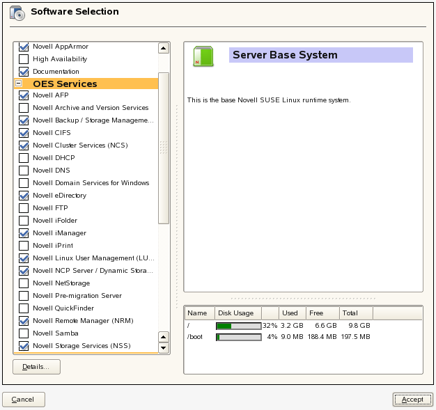 Click to proceed to the Novell Open Enterprise Server Configuration page.