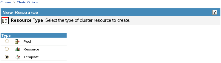 If desired, in , browse to the Cluster object and select the existing resource template in the Cluster container that you want to personalize for the new template.