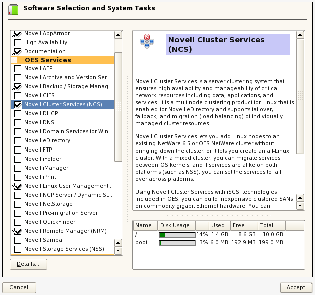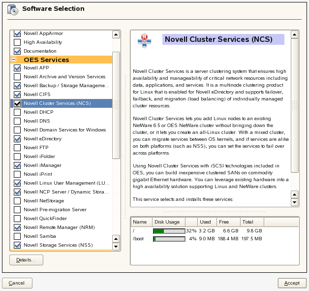 This section describes only those steps in the install that are directly related to installing Novell Cluster Services. For detailed instructions on installing OES 2 Linux, see the OES 2 SP3: Installation Guide.
