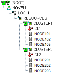 After you create a cluster, the following cluster objects are automatically created and stored in eDirectory under the Cluster object (