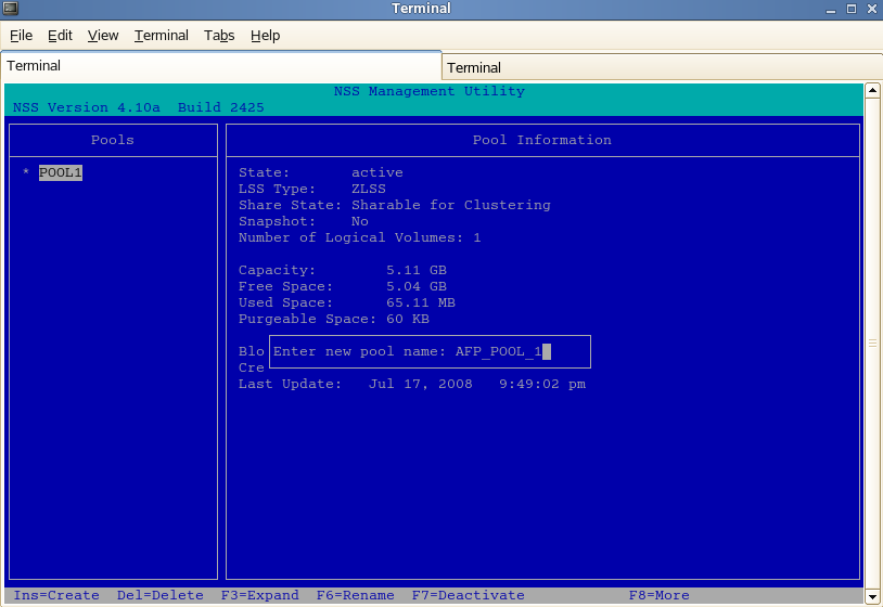 You can create a pool by using iManager or the NSSMU utility. The shared partition is automatically created when you create the pool.