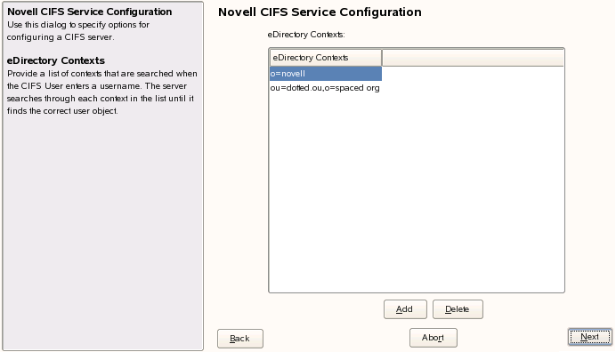 Before you begin, ensure that you have the required eDirectory admin credentials to proceed, if you are installing CIFS after installing OES 2 SP3 Linux.