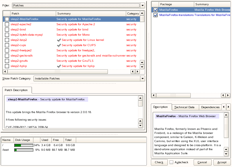 YaST contacts the server (which might take a few minutes) and then downloads the available patches.