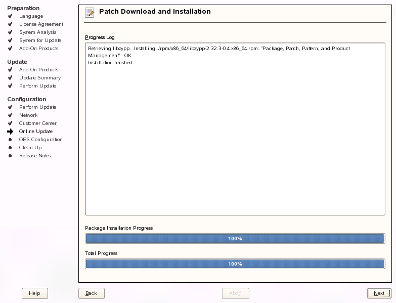 If you have already registered your OES 2 server and you want to download the available patches, leave selected and click Next.