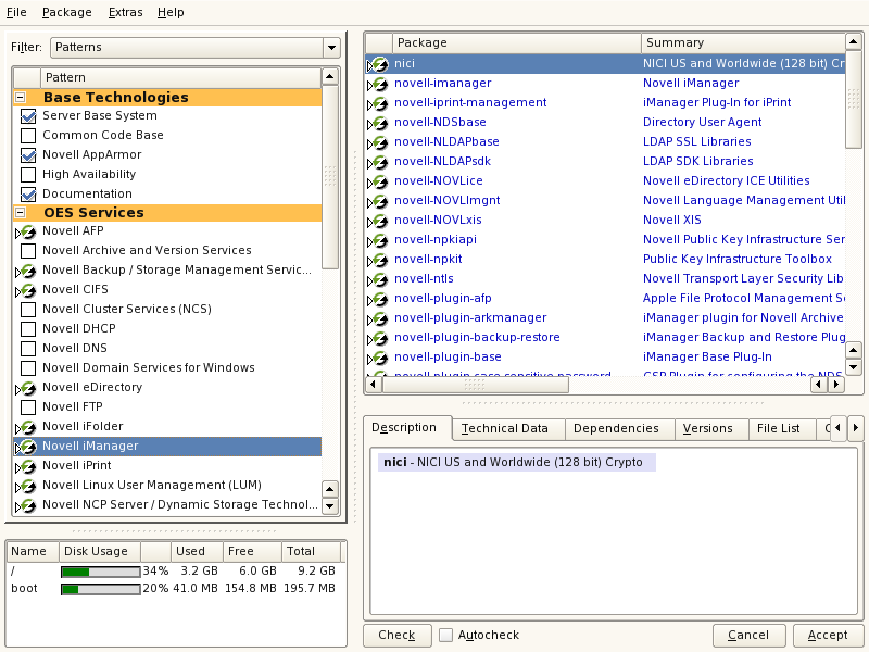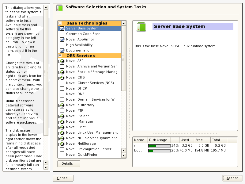 If you change the status to , you must configure the OES components after the installation is complete. See Installing or Configuring OES 2 SP3 on an Existing Server.