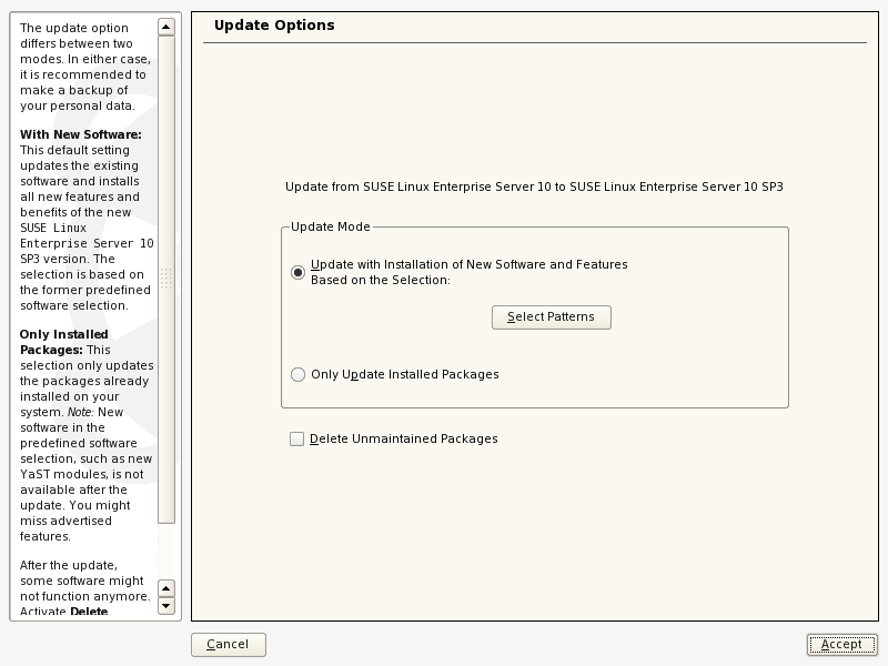 Section 5.4.10, Verifying and Customizing the Update Options in Installation Settings