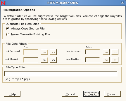 The let you set date ranges for and to filter the files that are migrated from the source server.