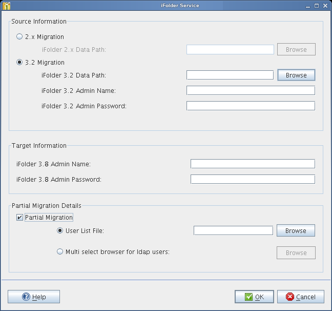 Select this option if you want to migrate the iFolder 3.2 application to iFolder 3.8.4 on OES 2 SP3. iFolder 3.2 Data Path: Specify the path where the iFolder 3.2 system data is migrated to on the target server. This is the location on the iFolder target server to which iFolder application files and the users' iFolders and files are migrated. The path is case-sensitive. |