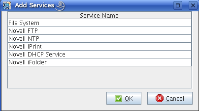 Add: The Add Services dialog box displays a list of services to be migrated to the target server. Services that are not installed on the target server prior to the migration are not listed.