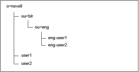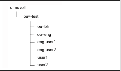 When the users are migrated to ou=test.o=novell, the resulting tree structure is shown in Figure 16-2.