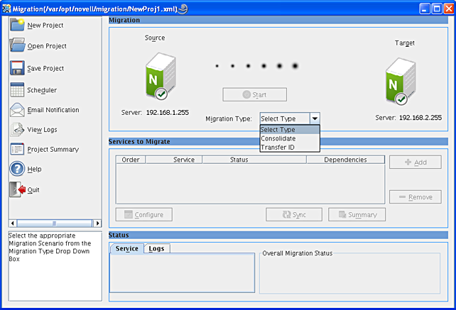 Section 2.3, Services to Migrate Pane