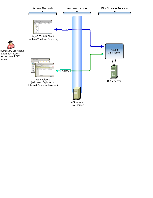 Figure 5-1 illustrates the file services available through Novell CIFS in OES 2.