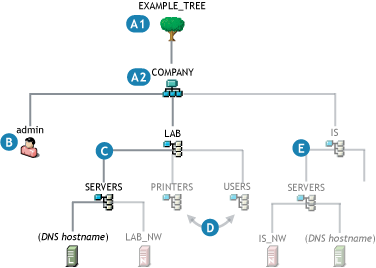 The Tree object is the top container object in the tree. It usually contains an Organization object (specified in the install by using o=company) that represents your company or organization. |