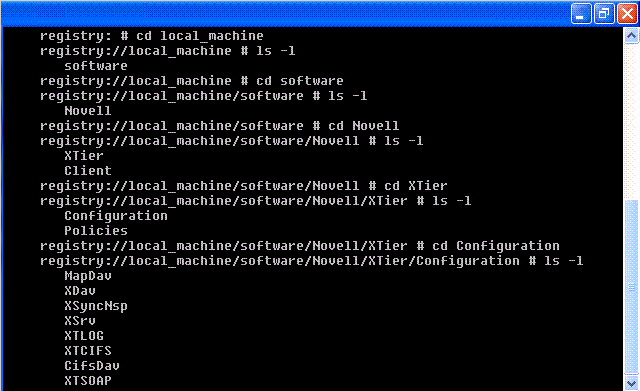 /opt/novell/xtier/bin/regutil -i /etc/opt/novell/xtier/xtier_registry.xml