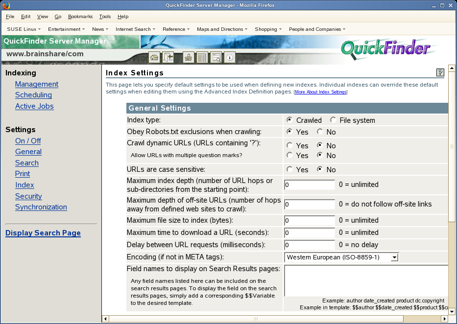 These settings are intended to make the process of creating indexes even easier by letting you configure common settings as default settings. This saves you time by not making you make the same selections each time you create a new index.