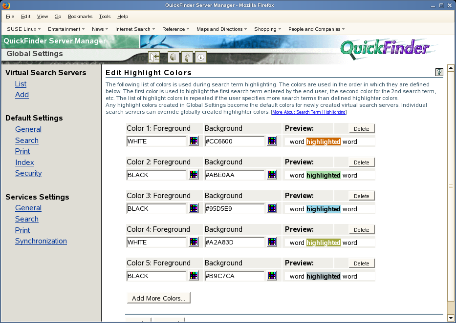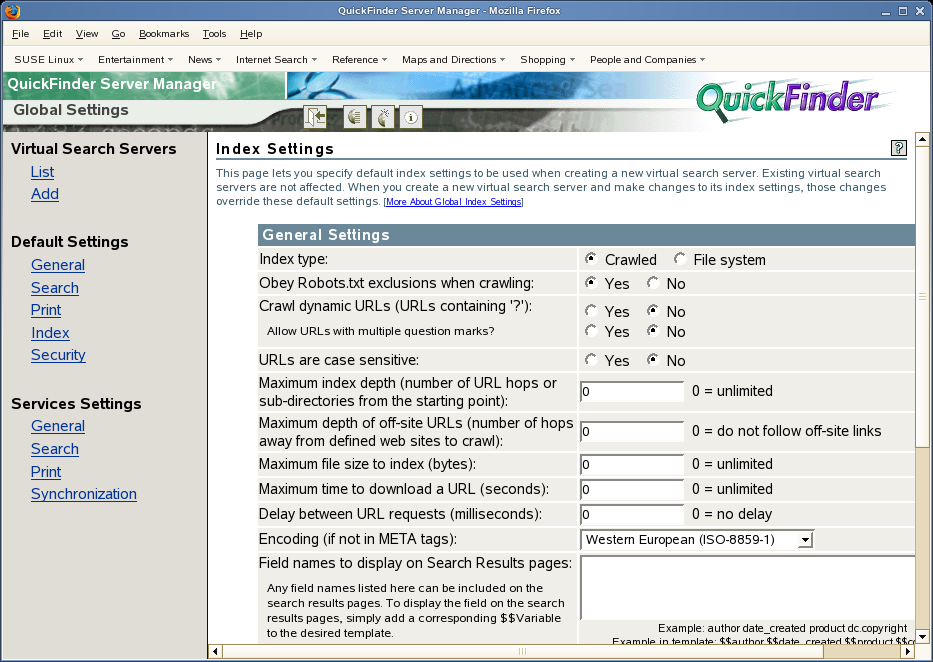 On the QuickFinder Server Manager’s Global Settings page, click under .