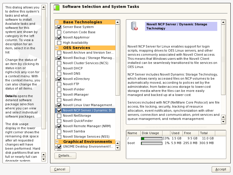 On the Software Selection page under , select and any other compatible OES components that you want to install.