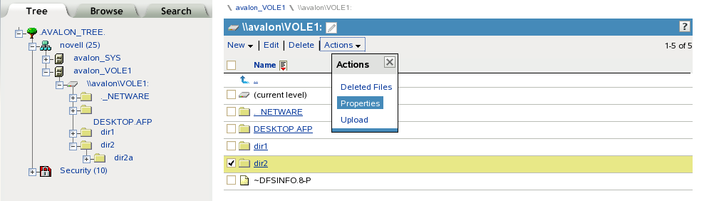 Tree View: In the iManager toolbar, click icon. In the left panel, browse the Tree to locate and select the folder you want to manage on an NSS volume.