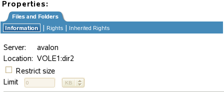 On the Properties page, view the current status of the Directory Quota on the selected folder.