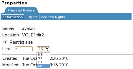 Modify an Existing Quota: In the field, type the new directory quota, then select whether this is KB, MB, GB, or TB from the Units drop-down list.