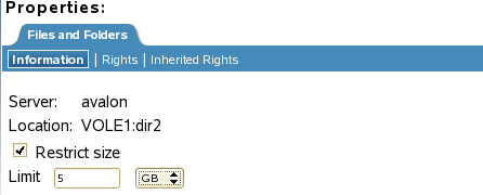 Add a Quota: Select the check box to enable space restrictions for the selected directory. In the field, type the quota value, then select whether this is KB, MB, GB, or TB from the Units drop-down list.