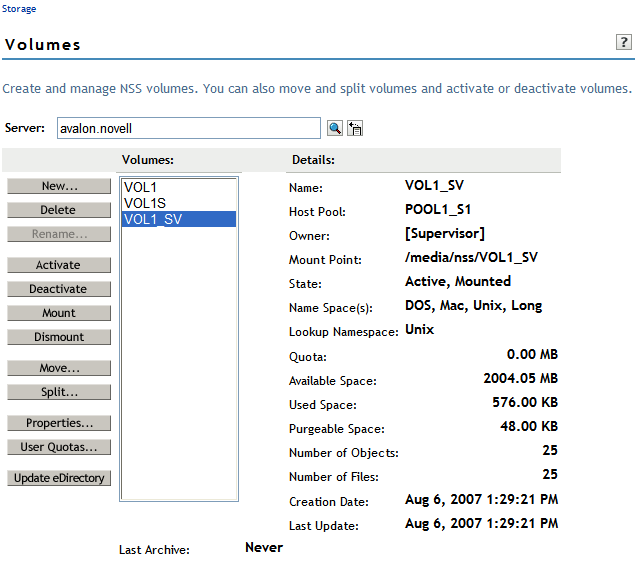 The snapshot volumes are listed in the list. They are deactive and unmounted by default.
