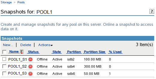 In the list, select the active pool that has snapshots you want to manage, then click to go to the page.