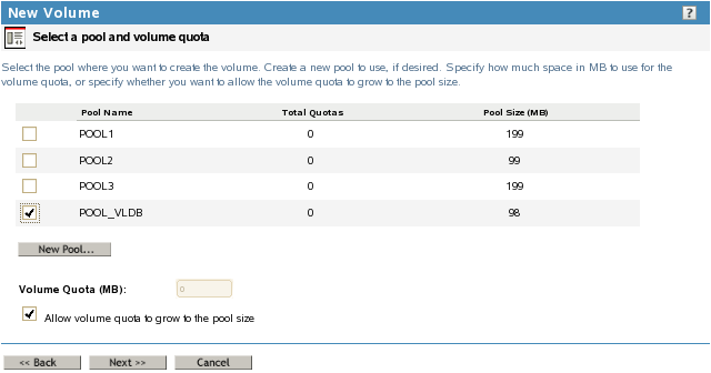 Volume Quota: Deselect , then type a size in MB for the volume if you want to limit the size of the volume.