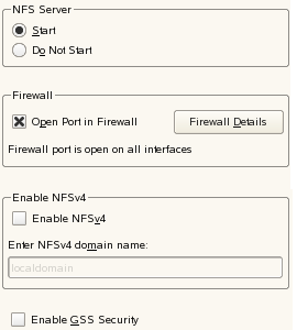 Firewall: Select to allow access to the NFS service from remote computers, then click to specify the network interfaces where you want to open the port.