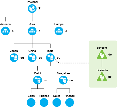 Assume that the container ou=India is mapped to a DSfW domain. A user which is part of this domain will be able to access all DSfW services such as domain login.