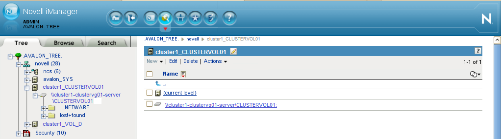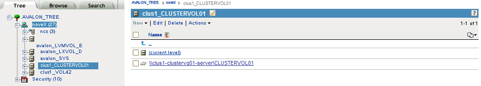 Verify that a clustered NCP Volume object appears in the Browse panel in iManager.