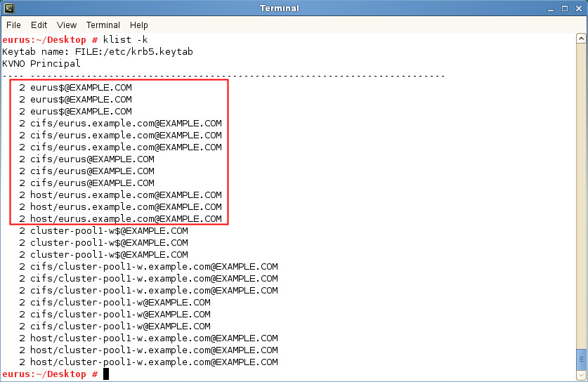 This section describes how to verify the service principals created on the OES 2015 SP1 cluster node and the computer objects created on the Active Directory domain.