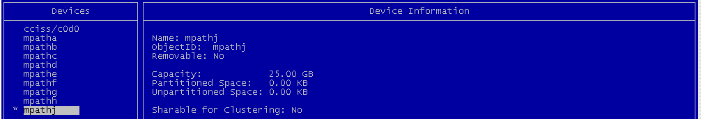 For example, the new device is mpathj on the active node. Remember that a multipath device might have a different multipath device name on each node.