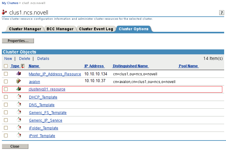 Verify that the resource was created by viewing its entry in the Cluster Objects list on the Cluster Options page.