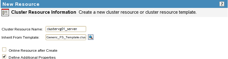 Select this option to automatically online the resource on its most preferred node as soon as it is created and configured. The most preferred node is the first server in the assigned nodes list for the resource. You should also select the Define Additional Properties check box to configure the resource now.