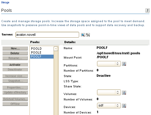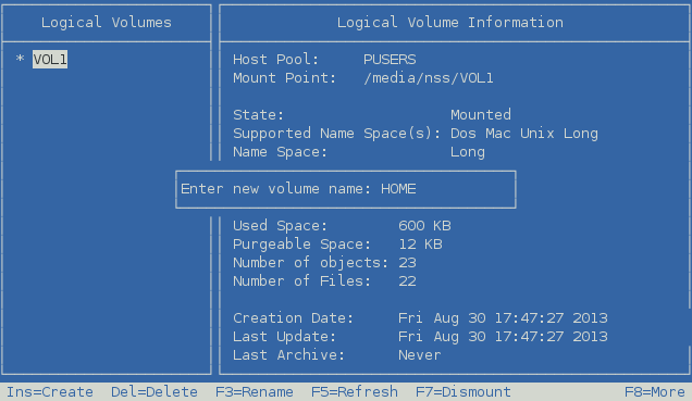 On the Pools page, select the pool that contains the volume you want to rename, then press F7 Activate.