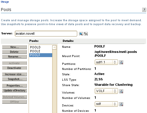 In the Pools list, select the shared pool that contains the volume, then click Activate.