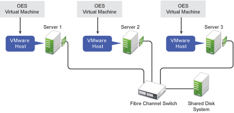 Novell Cluster Services can be installed on host machines. Virtual machines are virtualized as cluster resources that can be failed over between physical machines in the same cluster. Nodes in the cluster run the same virtualization software, such as Xen or KVM.
