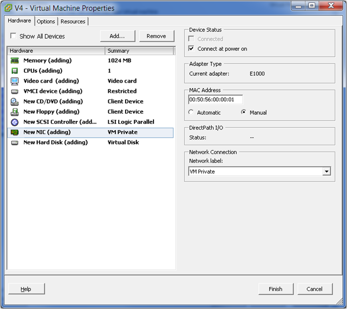 Figure 3-34 Create New VM: Hardware > NIC > Manual MAC Address
