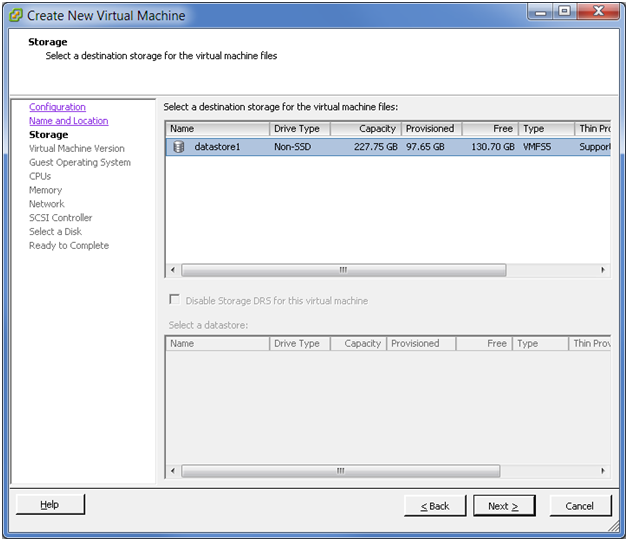 6. On the Storage page, select a destination datastore for the virtual machine files, then click Next.