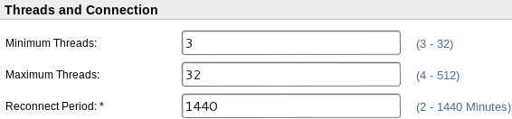 Minimum threads: 3 to 32, default value: 3